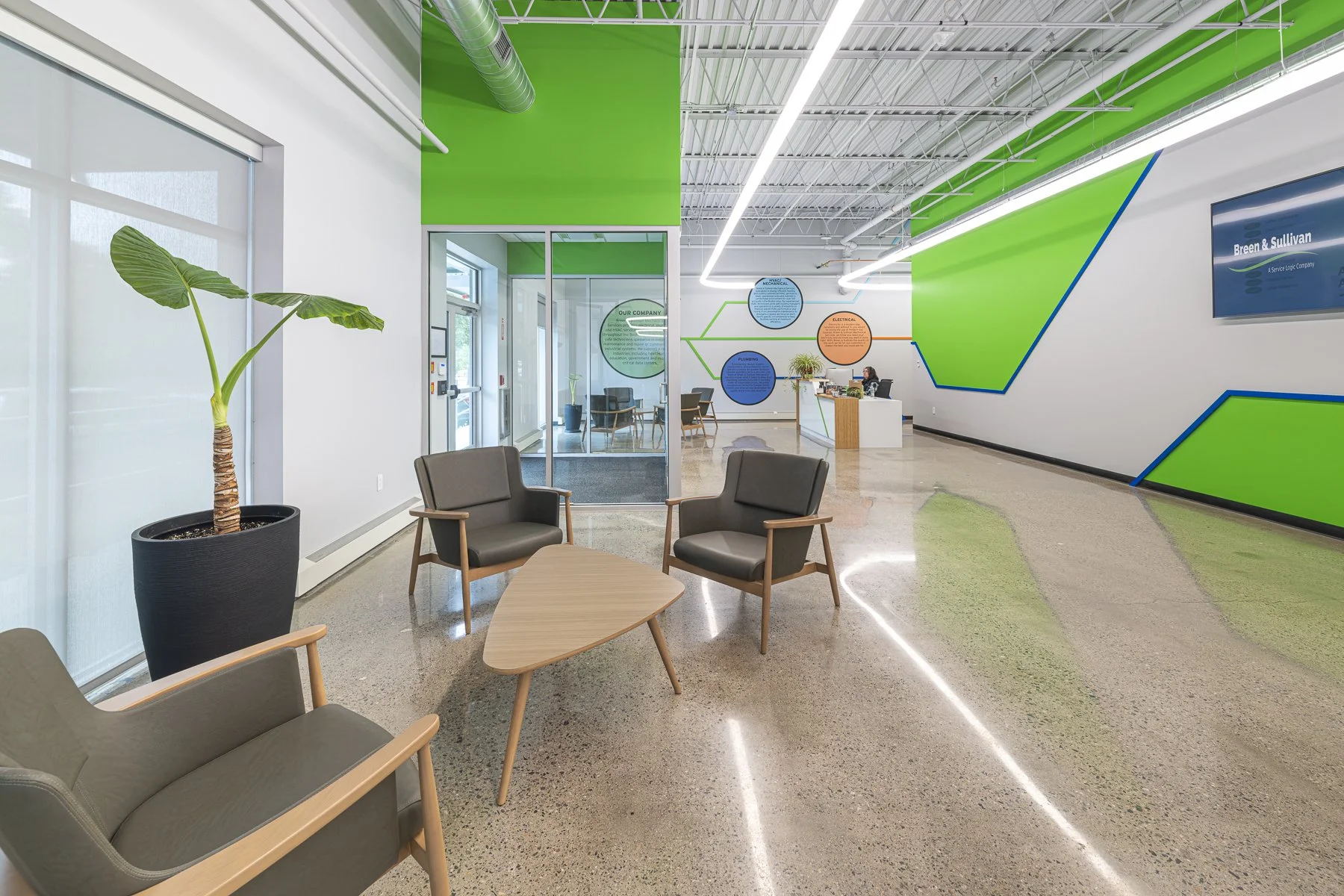 Classroom furniture, workstations and private offices for the staff, custom reception desk, and ancillary furniture for the common areas